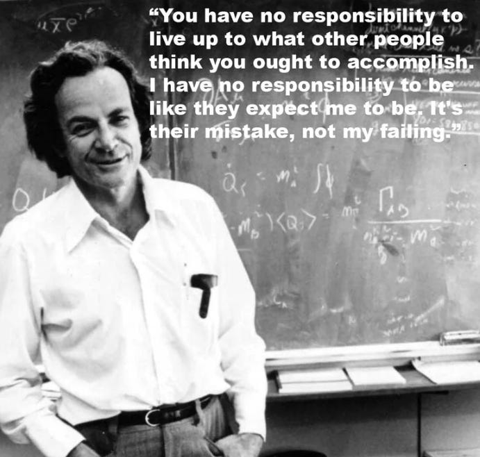 Feynman’s wisdom reminds us that living authentically begins with rejecting the weight of others’ expectations. By setting personal goals aligned with your values—and resisting the urge to compare—you can create a life that feels meaningful and fulfilling.